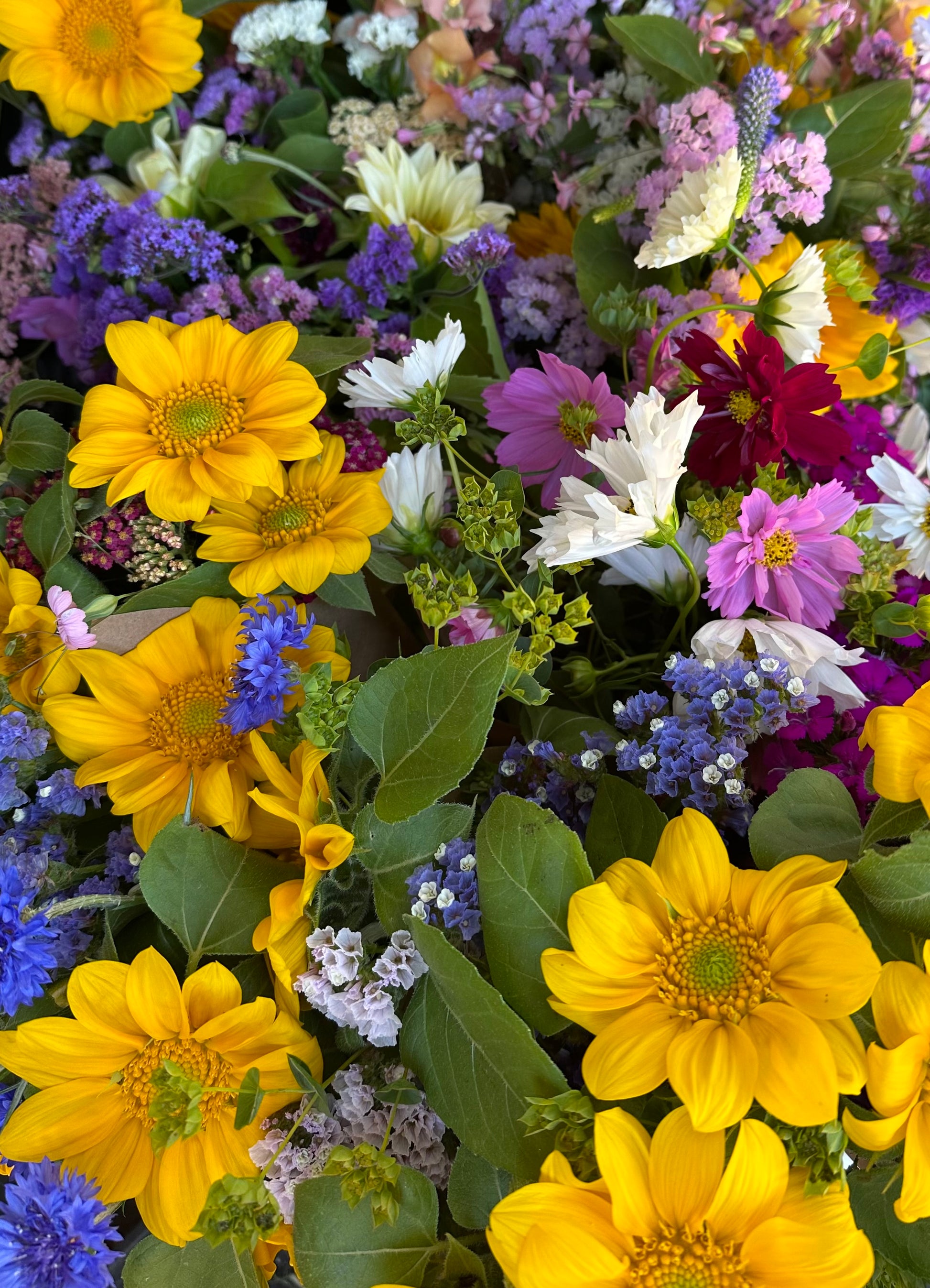 Buckets include 75-100 of the best stems from our field that week including a mix of focal flowers, filler flowers and greens. We estimate that each bucket will fill approximately 6-8 small arrangements (mason jar size), 3-4 bridesmaid bouquets or 25 bud vases. Our flowers are hand-picked for your order, fully hydrated, cleaned and trimmed.